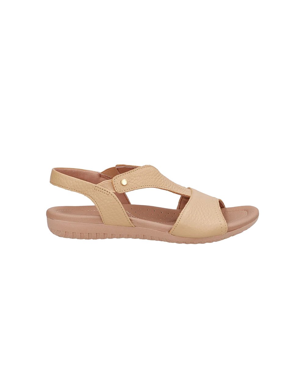 Sandália Rasteira Usaflex Tira Elástica Couro Creme Bege
