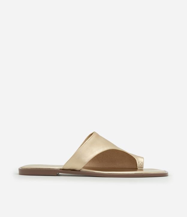 • Sandália Rasteirinha Mule em Couro com Cabedal Largo Dourado 5