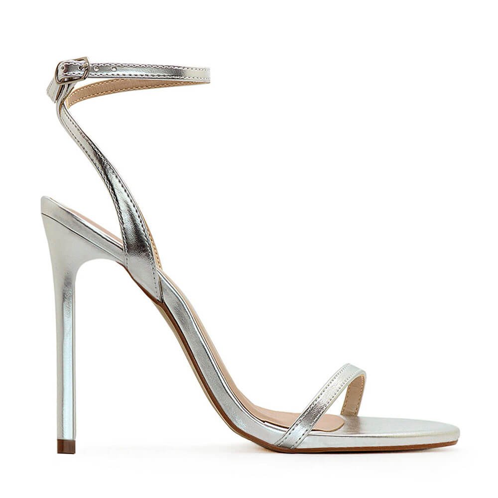 Sandália Royalz Metalizada Liz Salto Alto Fino Prata Prata