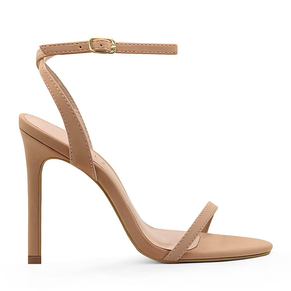 • Sandália Royalz Nobuck Liz Salto Alto Fino Nude Escuro Bege 1