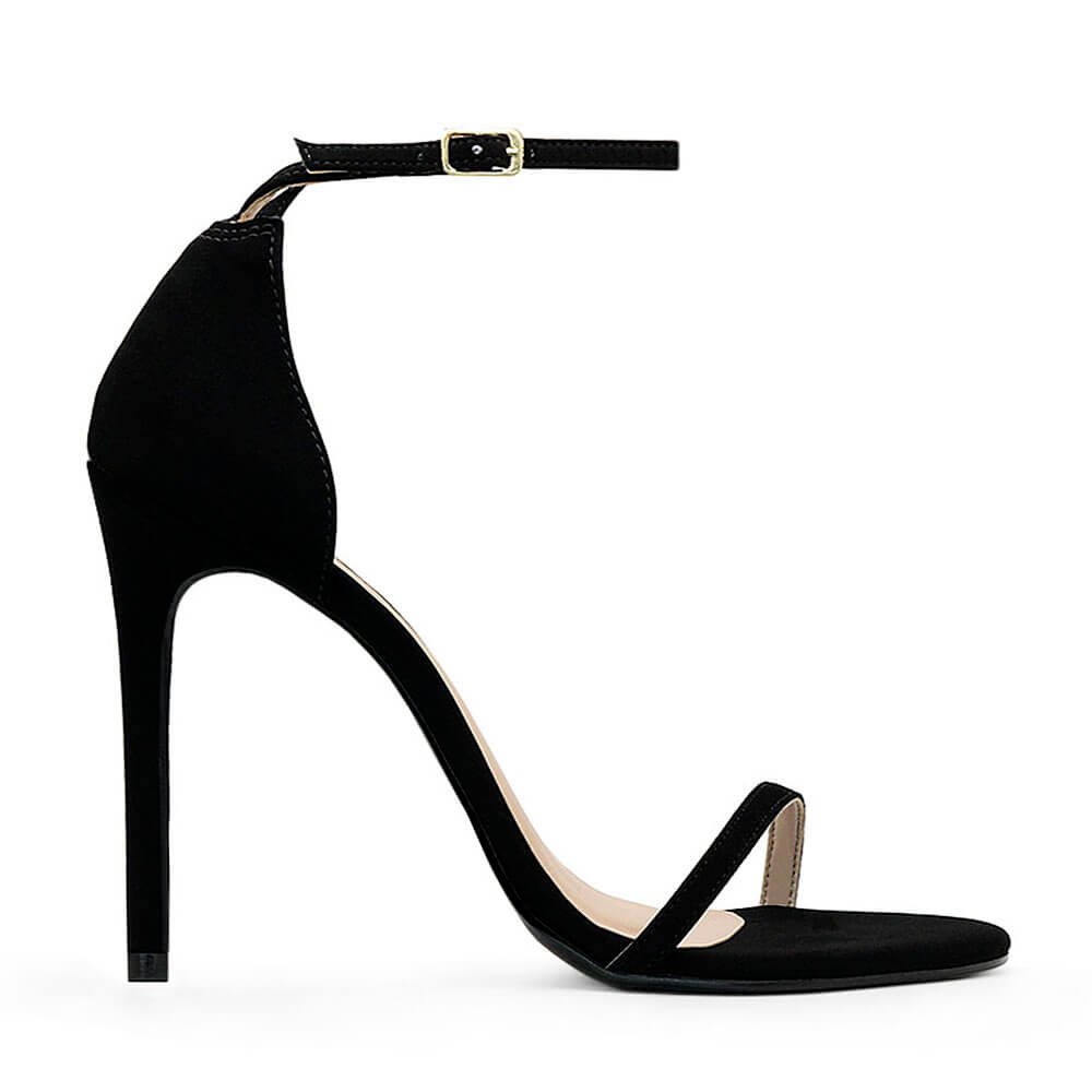 Sandália Royalz Nobuck Sola Vermelha Paola Salto Alto Fino Tira Preta Preto