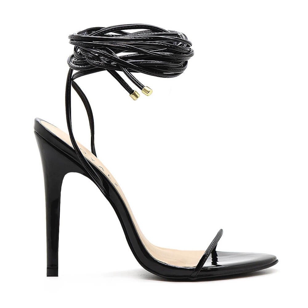 Sandália Royalz Verniz Louise Amarração Salto Alto Fino Preta