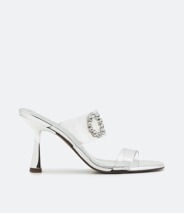 Sandália Salto Alto com Tiras em Vinil e Detalhe em Pedraria