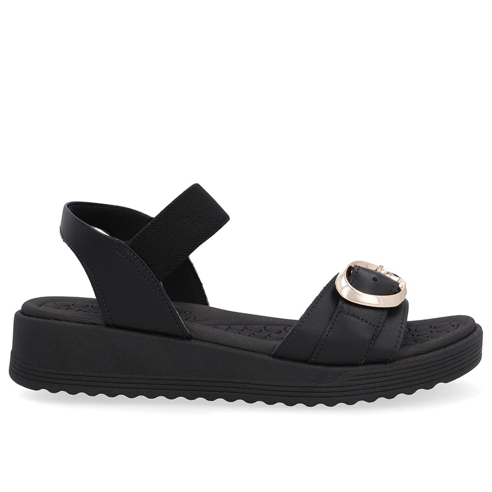 • Sandália Salto Anabela Fivela Couro Preta Preto 3