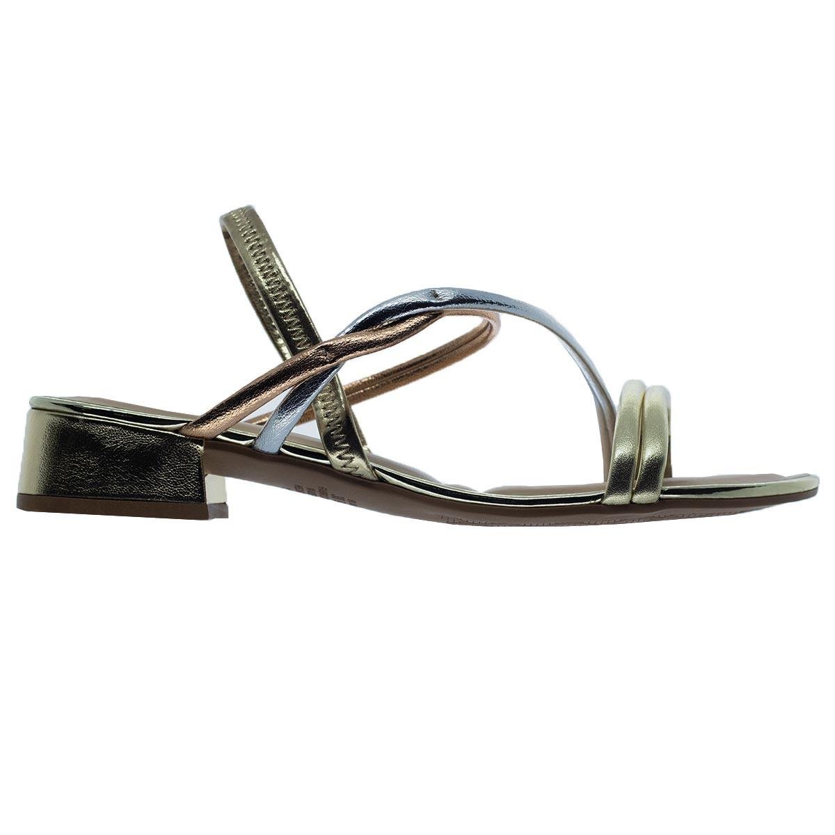 Sandália Salto Baixo Metalizada Feminina Dakota Y8053 Dourada