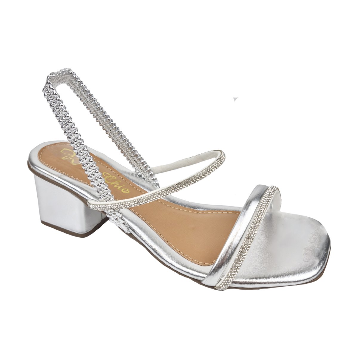 • Sandália Salto Baixo Tiras com Strass Feminino Rosa Chic Prata 1