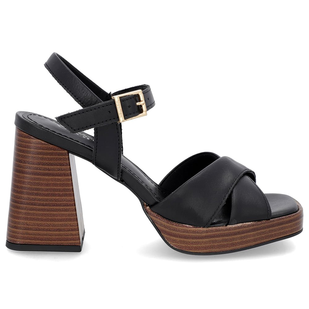 Sandália Salto Bloco Amadeirado Couro Preta