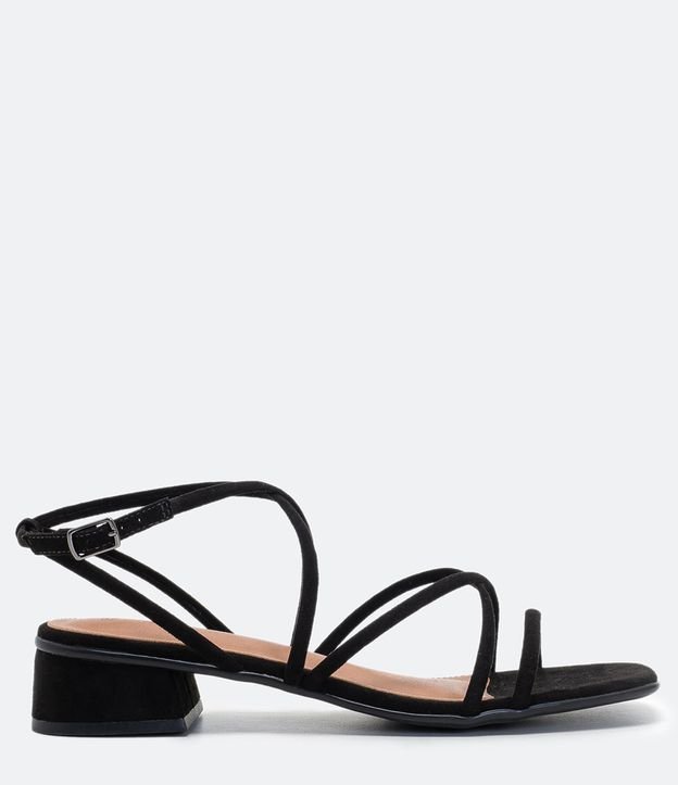 Sandália Salto Bloco Bico Quadrado Cabedal Tiras Satinato