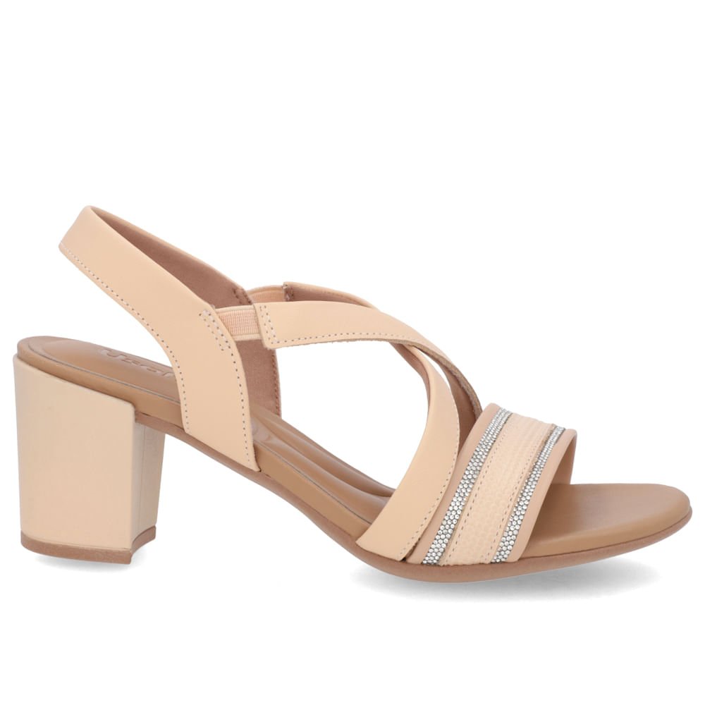 Sandália Salto Bloco Couro Laranja Claro Brilho