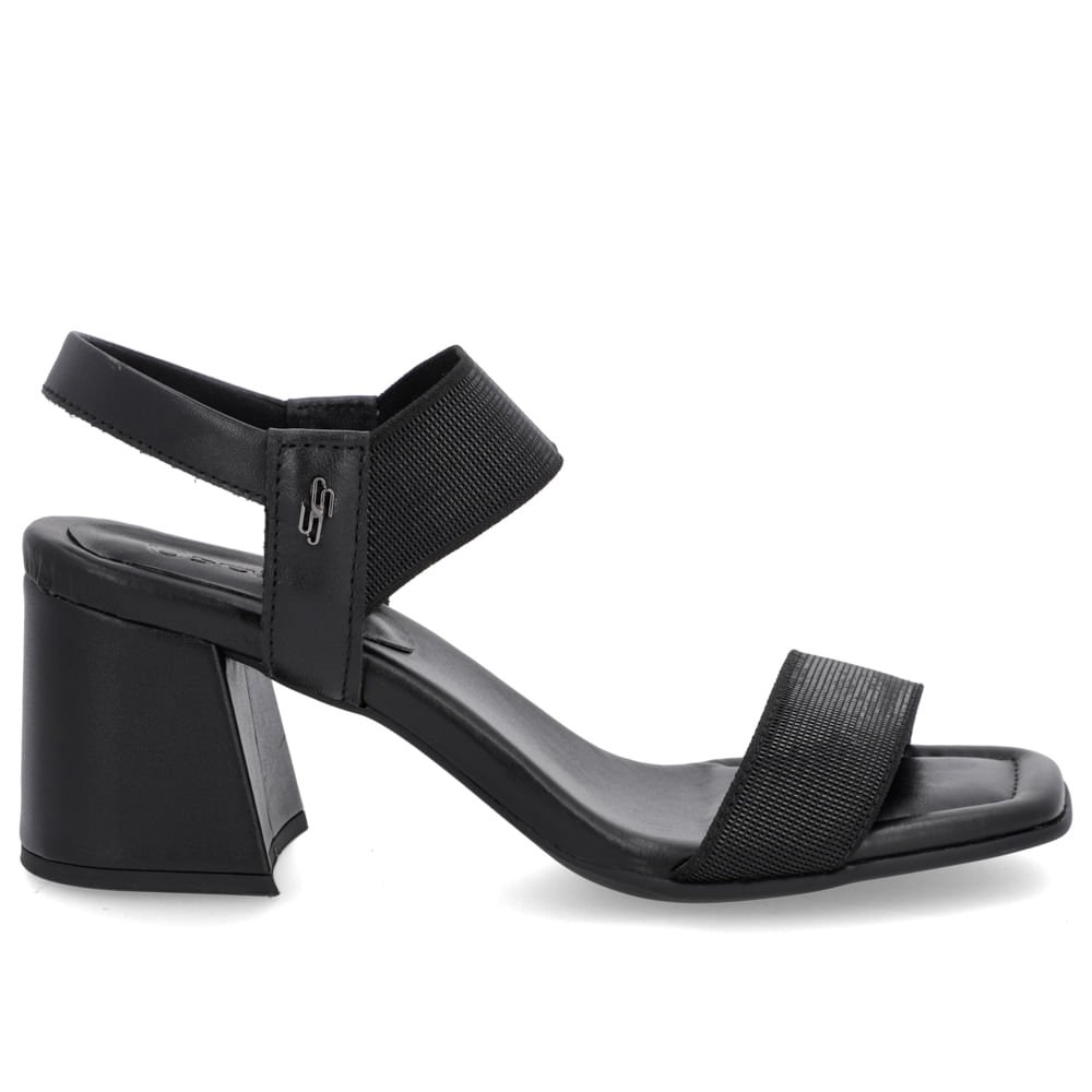 Sandália Salto Bloco Couro Preto Tira Elástico