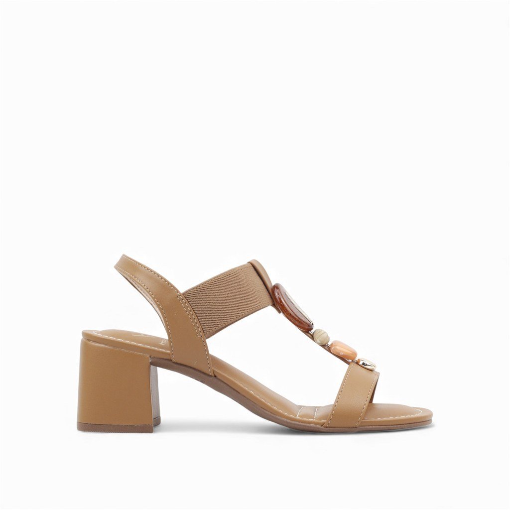 Sandália Salto Bloco Pedraria Bege