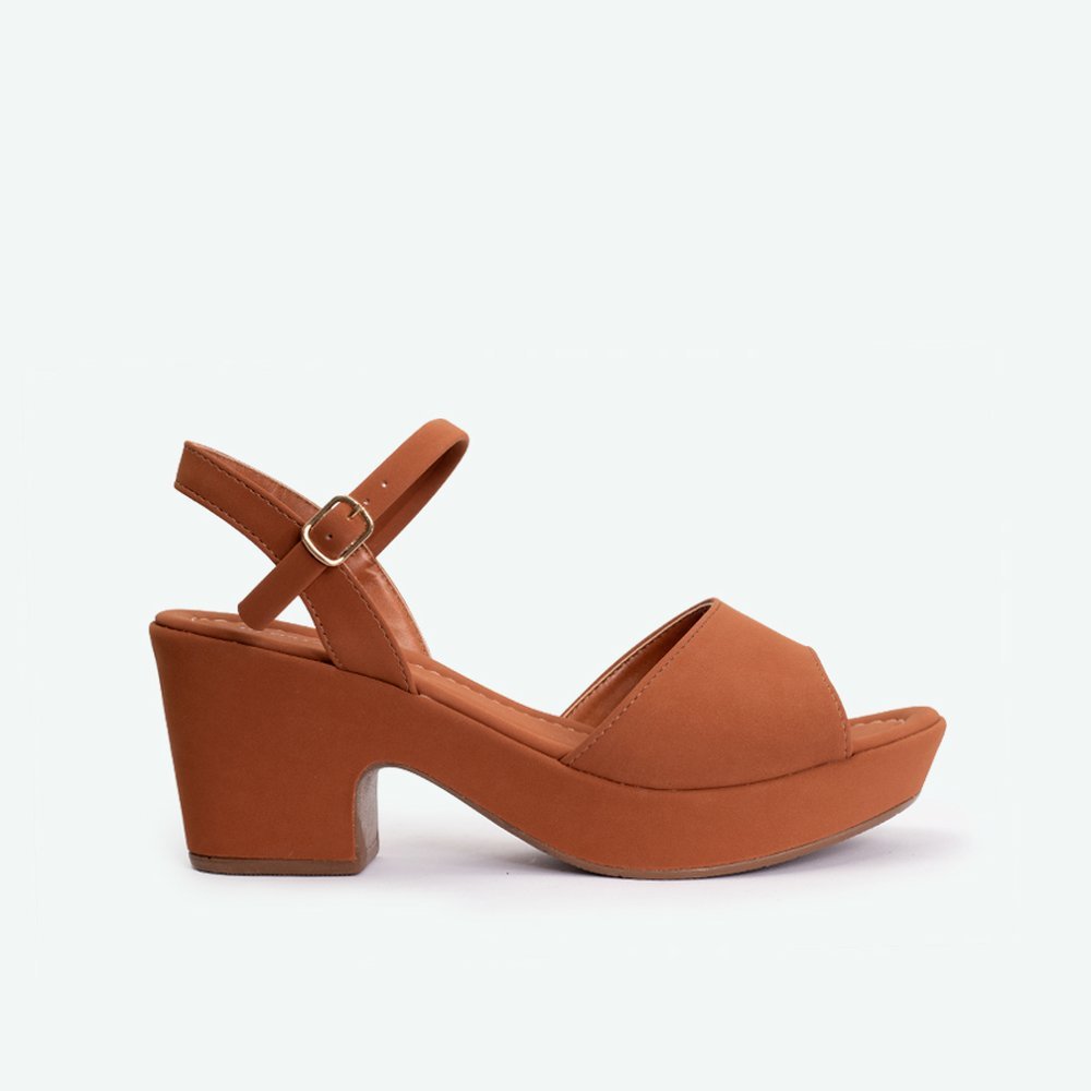 Sandália salto com tiras nobuck caramelo CARAMELO - 39