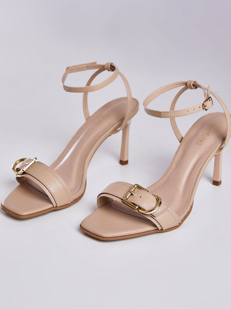 Sandalia Salto Fino com Fivela Porcelana Bege