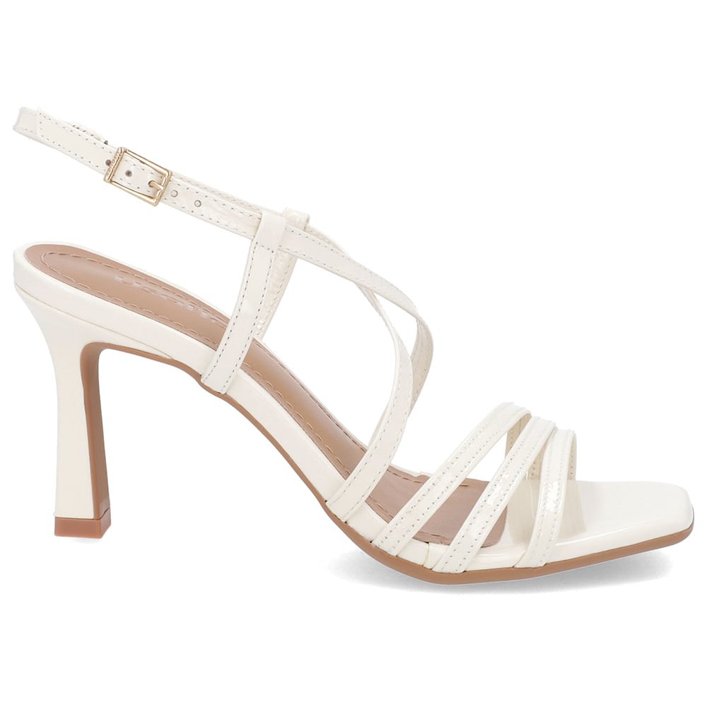 Sandália cabedal em couro verniz show marfim. O modelo possui tecnologia Memória Permanente, com material de capacidade de retorno e mantêm o formato dos seus pés na palmilha.