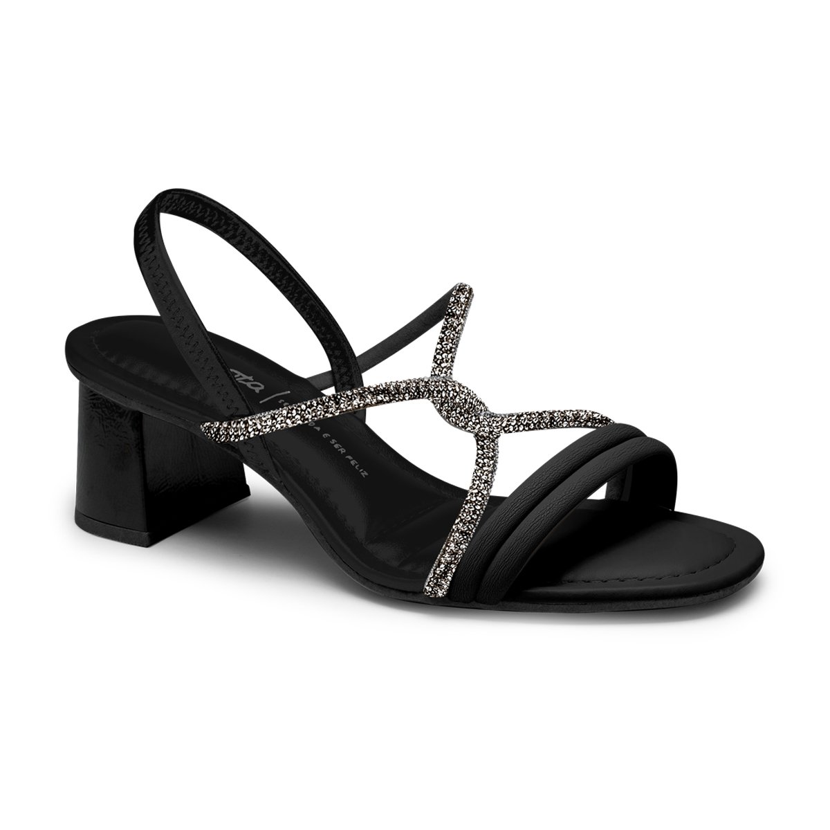Sandália Salto Grosso Tira Cruzada Pedraria Feminina Dakota Preto