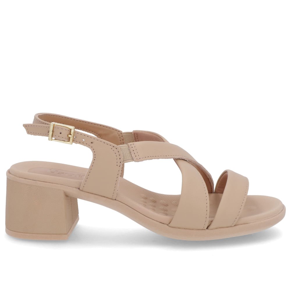 Sandália Salto Médio Couro Bege Ajuste Fivela