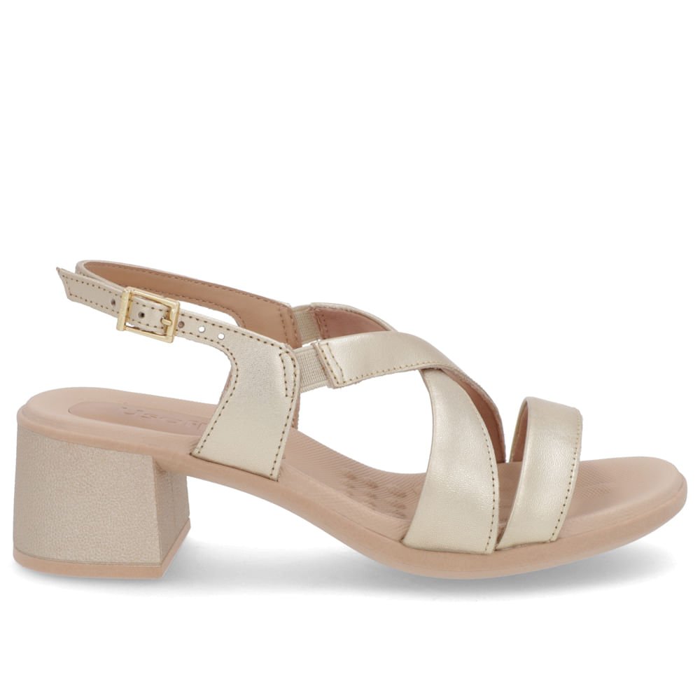 Sandália Salto Médio Couro Dourado Ajuste Fivela