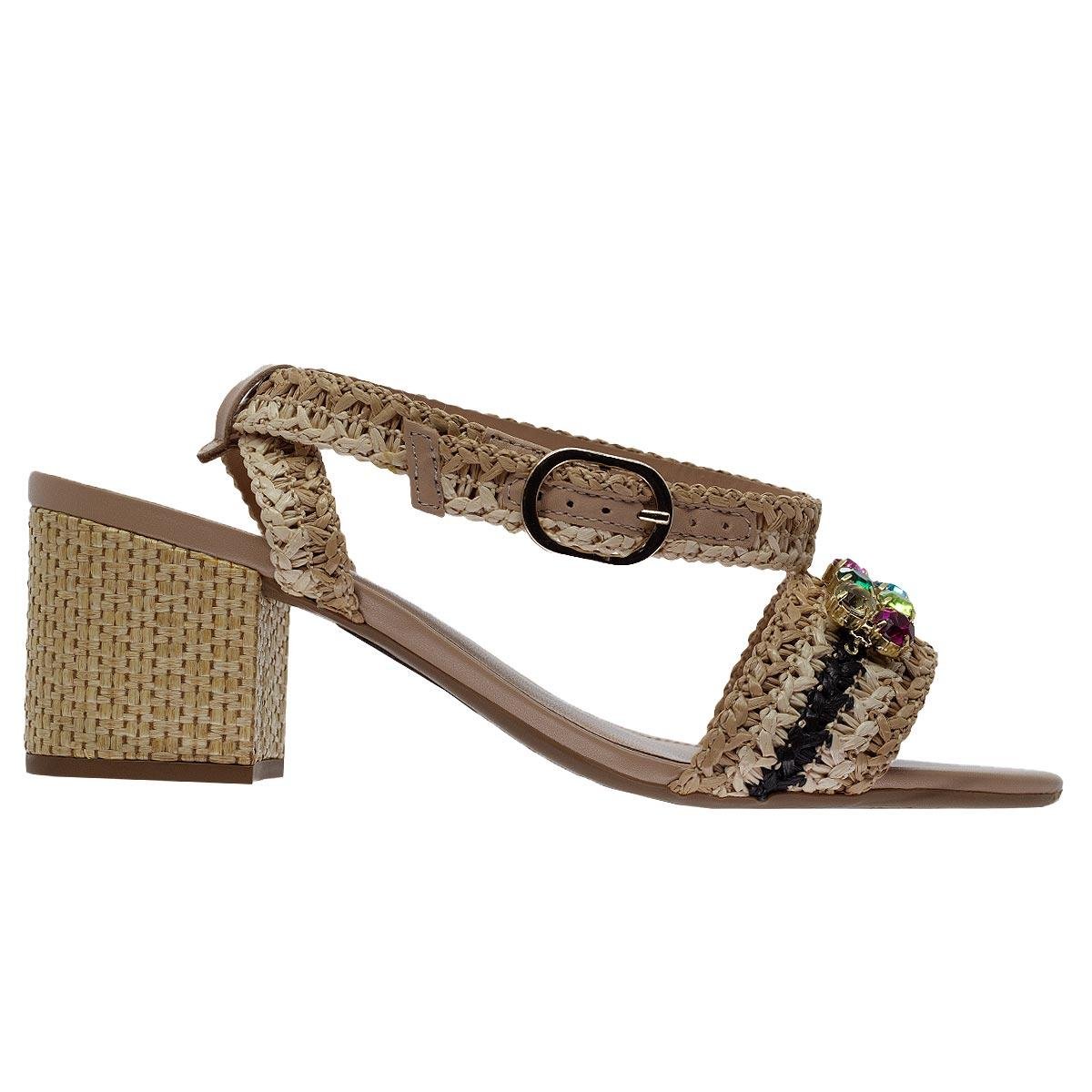 Sandália Salto Médio Feminino Arezzo A10055 Palha Bege