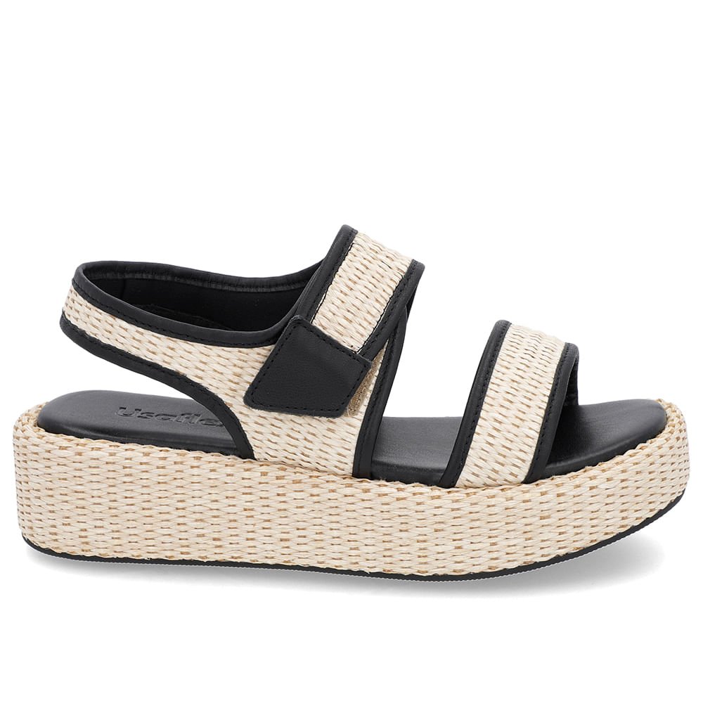 Sandália Salto Plataforma Palha Couro Preta