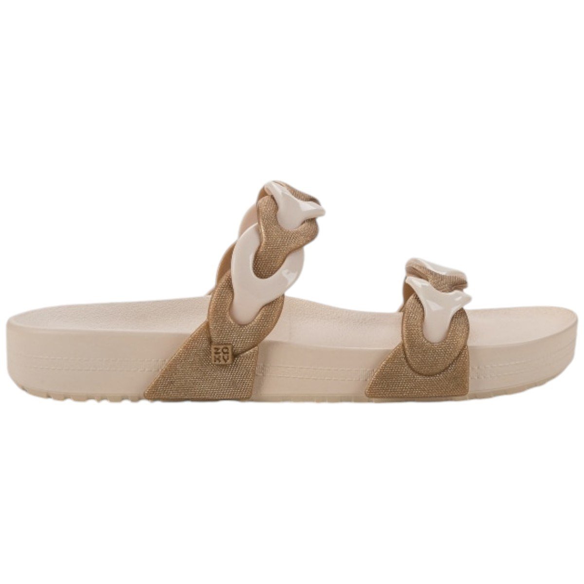 Sandália Slide Feminina Zaxy Glitz Solado Anatômico Conforto Off White