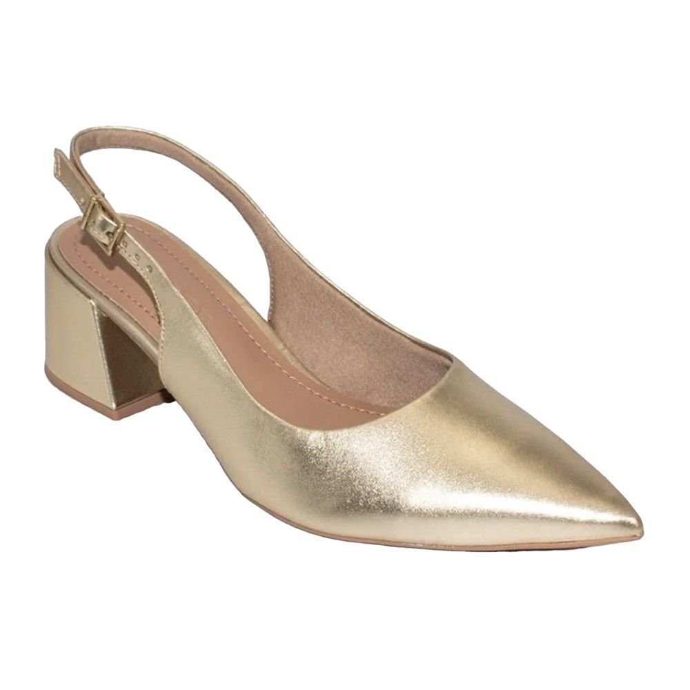 • Sandália Slingback Usaflex Salto Bloco Feminina Dourado 1