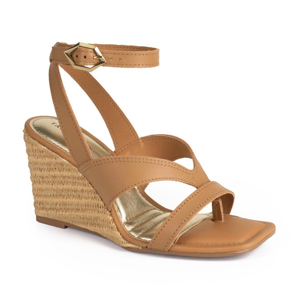 Sandália Tanara Anabela Em Couro Feminina T9312 Caramelo