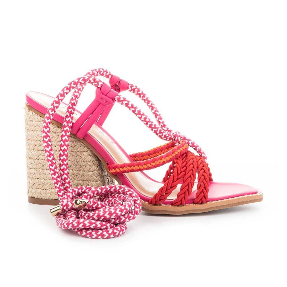 • Sandália Tanara de Salto Bloco Com Amarração Rosa 7