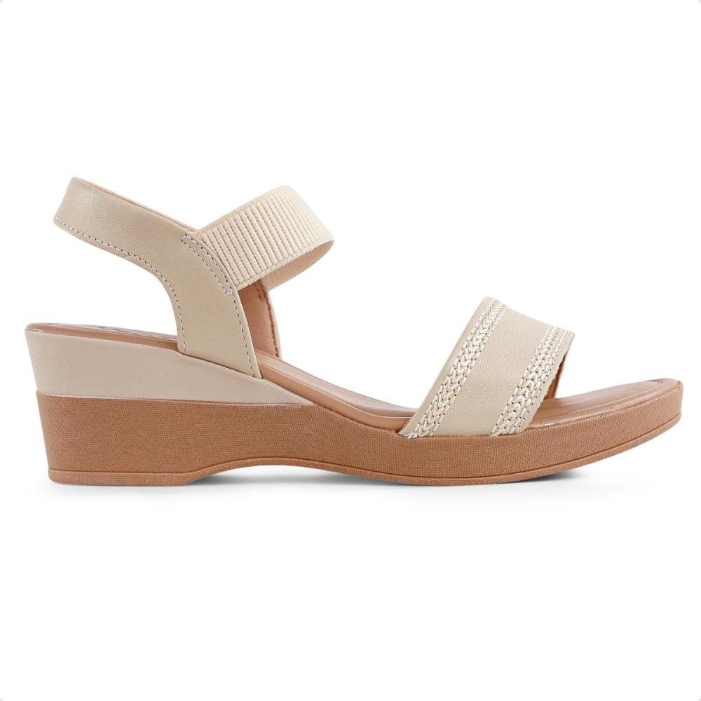 Sandália Usaflex Salto Anabela Feminina Bege/Creme