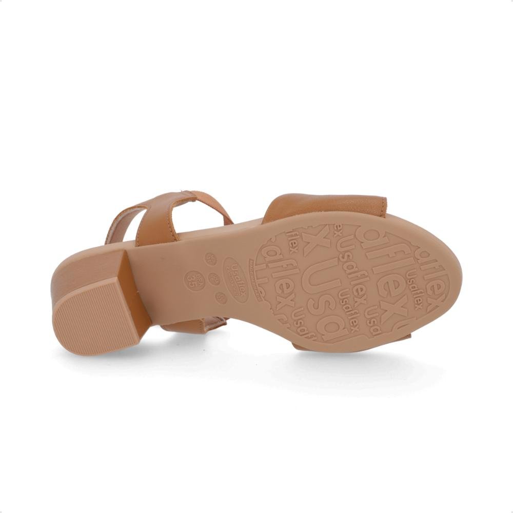 Sandália Usaflex Salto Bloco Enfeite Feminina Marrom/Bege