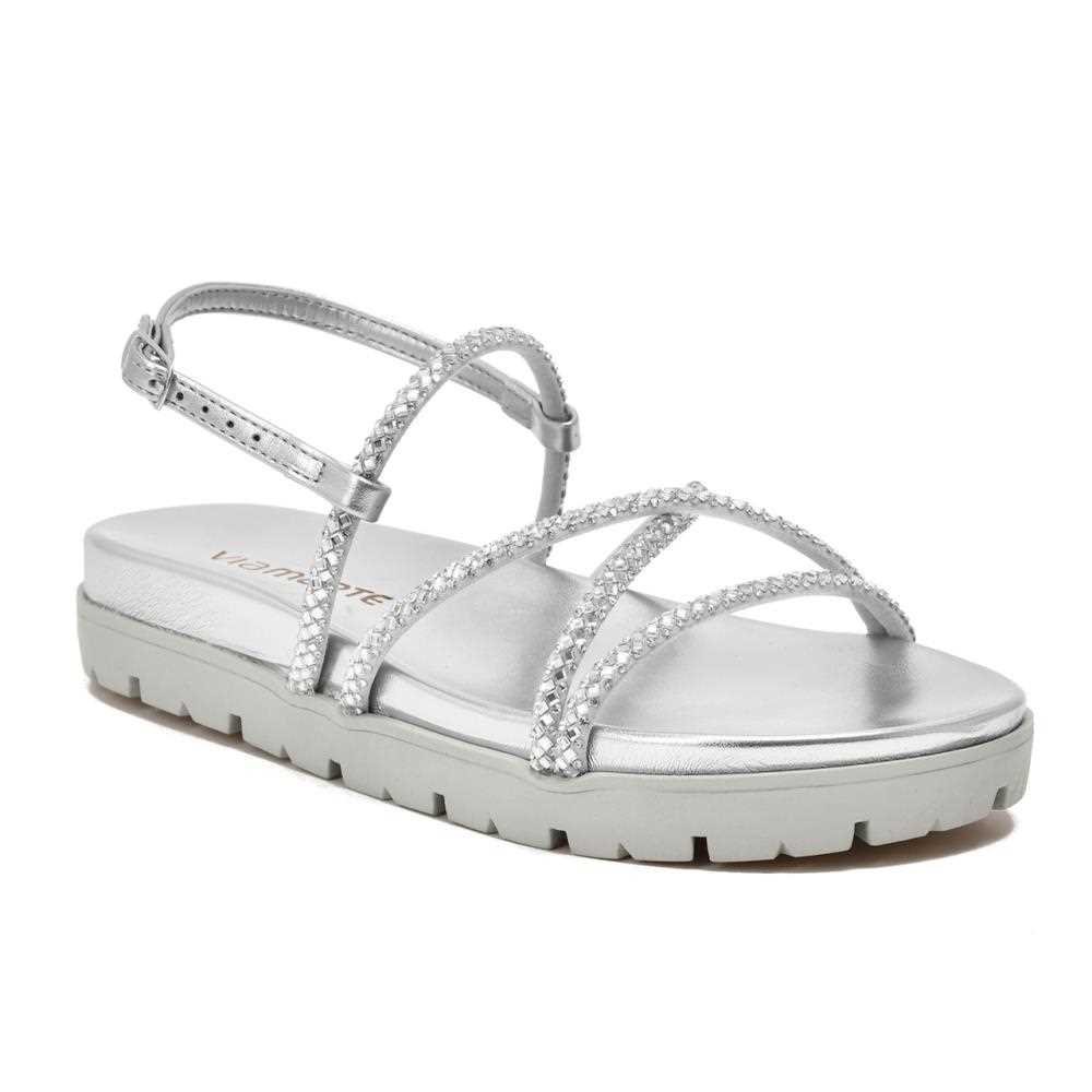 Sandália Via Marte Rasteira Feminina Papete 102-007-01 Prata