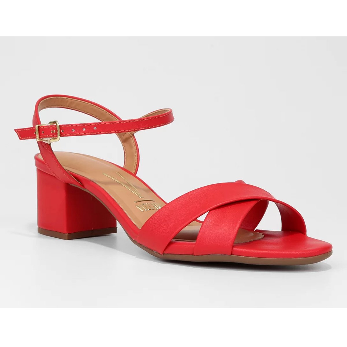 Sandália Vizzano Salto Bloco Médio Feminina - Vermelho Claro Vermelho