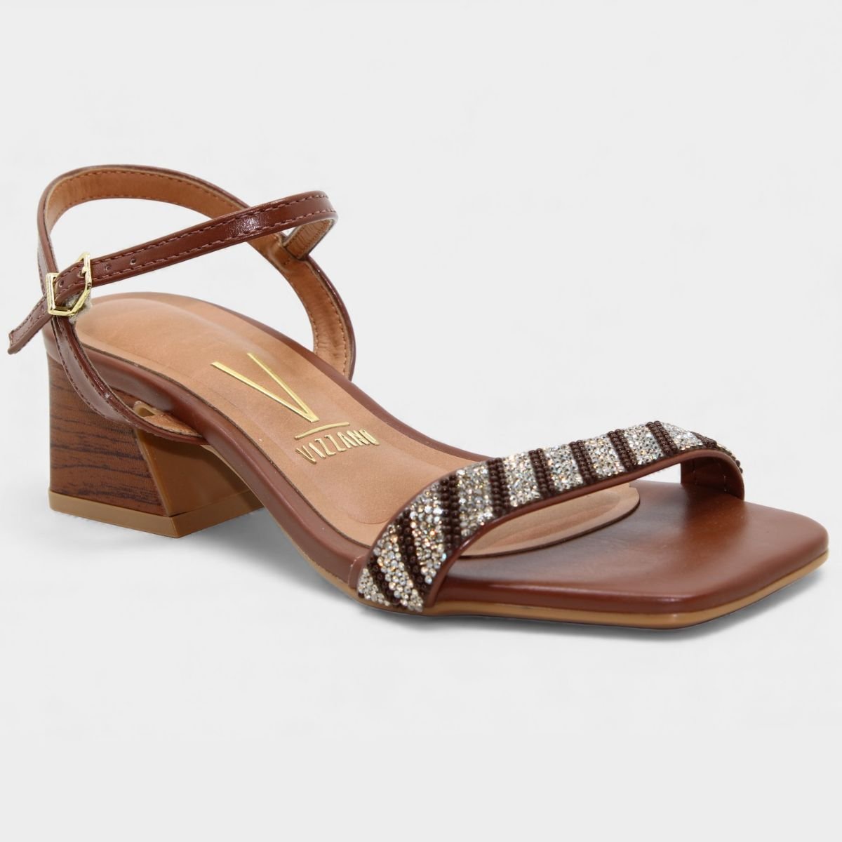 Sandália Vizzano Salto Bloco Strass Bicolor Feminina - Marrom Marrom