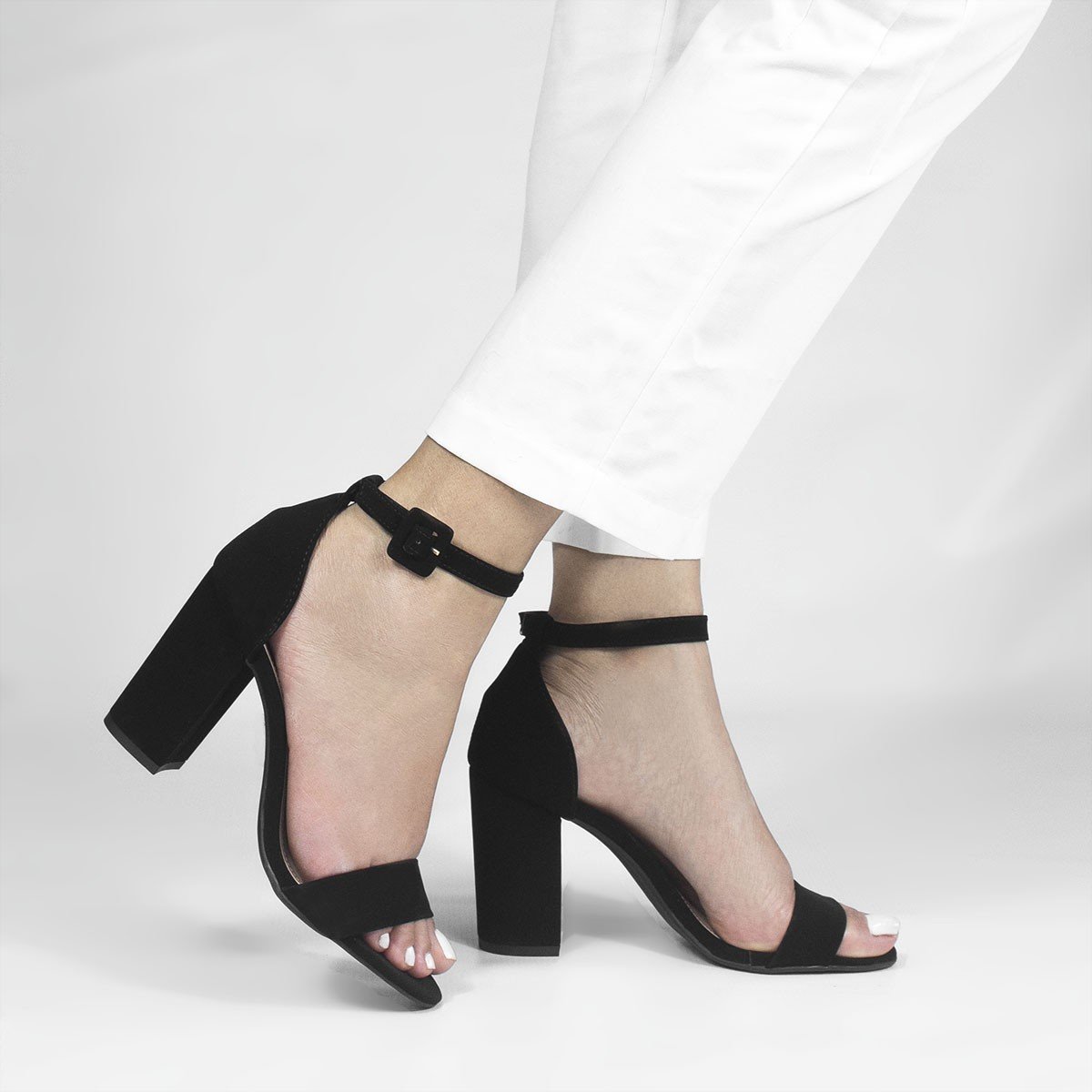 Sandália Zatta Salto Alto Bloco Dominique Nobuck Preto