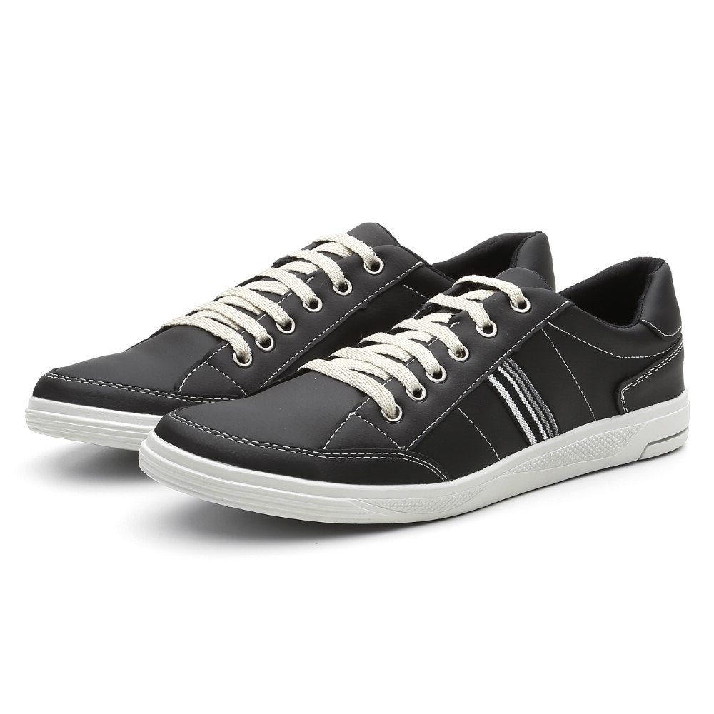 Sapatenis Cadarço Masculino Listras Laterais Tenis Iate Casual Otima Qualidade Conforto e Segurança Preto