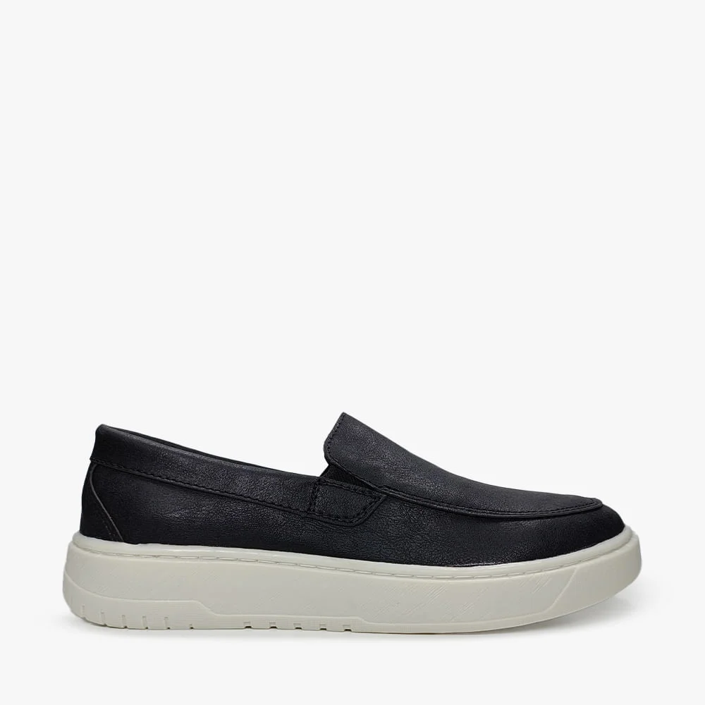 Sapatênis Loafer Casual Masculino Em Couro Solado EVA EROS Preto
