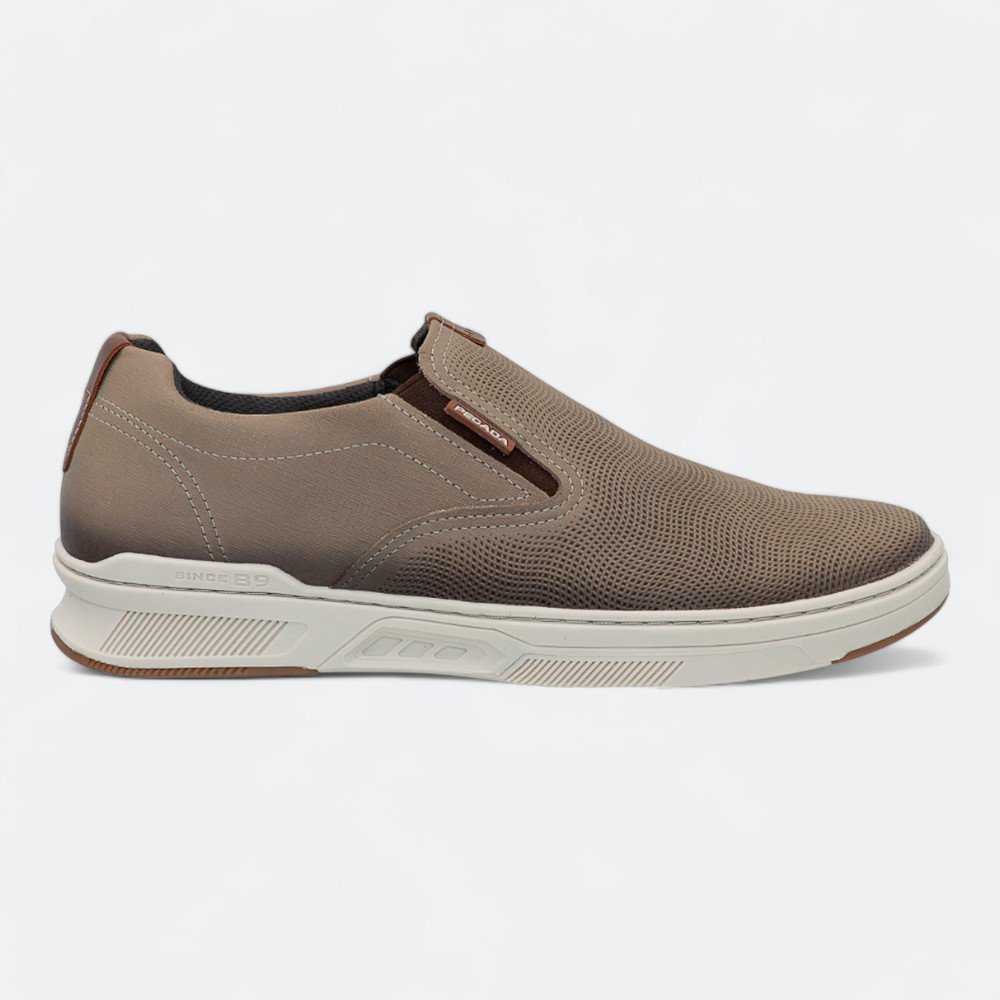 Sapatênis Pegada Slip On em Couro Masculino 11060308 Bege