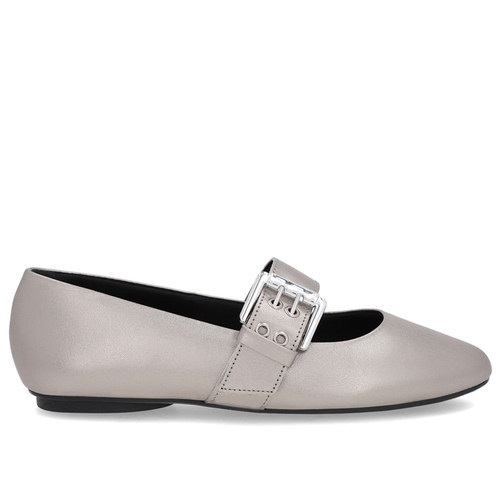 Sapatilha Aço Couro Tira Fivela Cinza