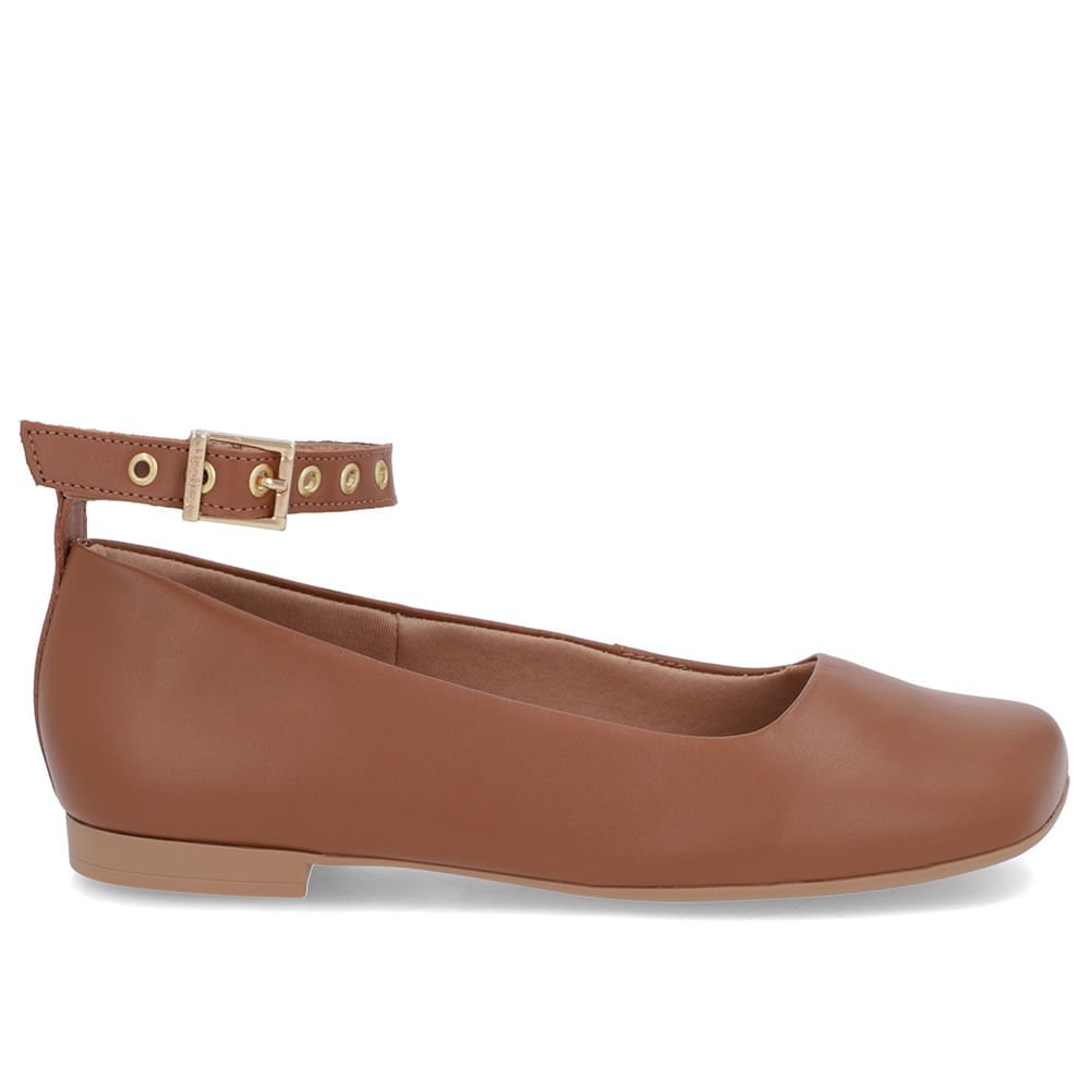 Sapatilha Ajuste Tornozelo Marrom Couro Bico Quadrado