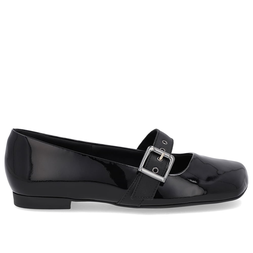 Sapatilha Boneca Preta Verniz Bico Quadrado Preto