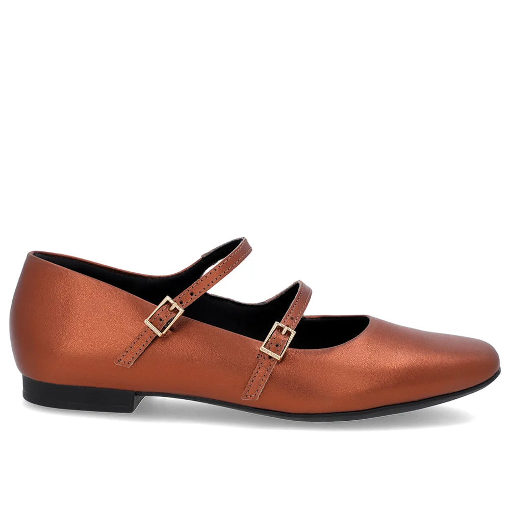 Sapatilha Cobre Couro Tiras Fivelas Cobre