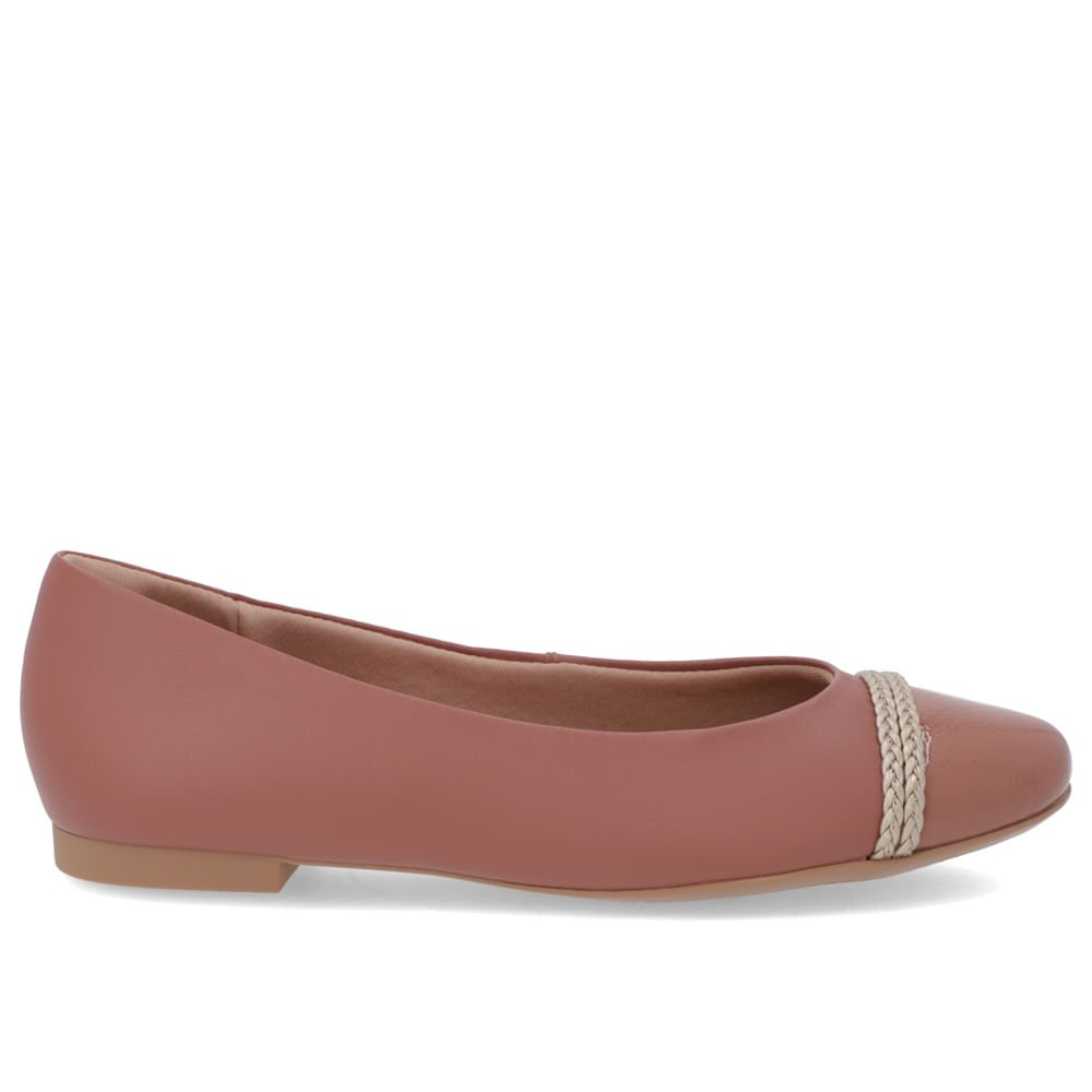 Sapatilha cabedal em couros verniz show e napa valise na cor rosa vintage,detalhamento em trança.O modelo possui tecnologia +Bem-Estar, com espumas posicionadas em pontos estratégicos na palmilha garantindo conforto e suavidade na pisada.
