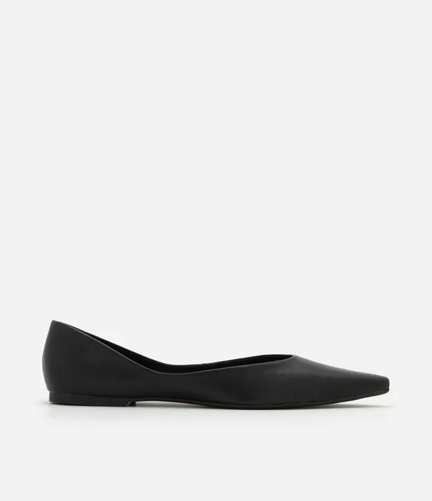 Sapatilha em Couro com Bico Fino Preto