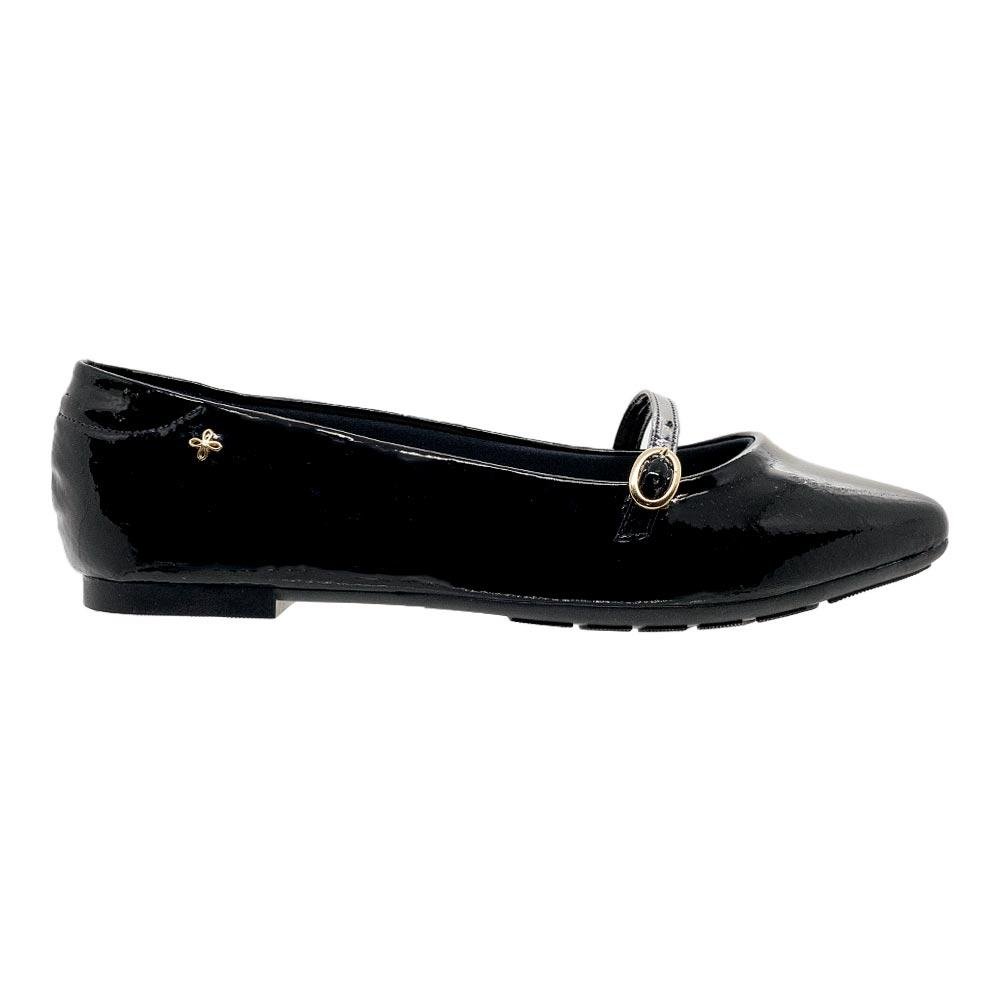 Sapatilha Feminina Softli Bico Fino Mary Jane 10000 Preto Preto