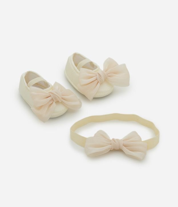 Sapatilha Infantil com Faixa De Cabelo e Laço – Tam 15 A 19 Bege Claro