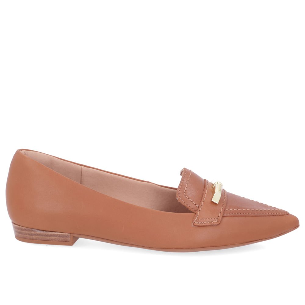 Sapatilha Marrom Canela Couro Bico Fino Enfeite