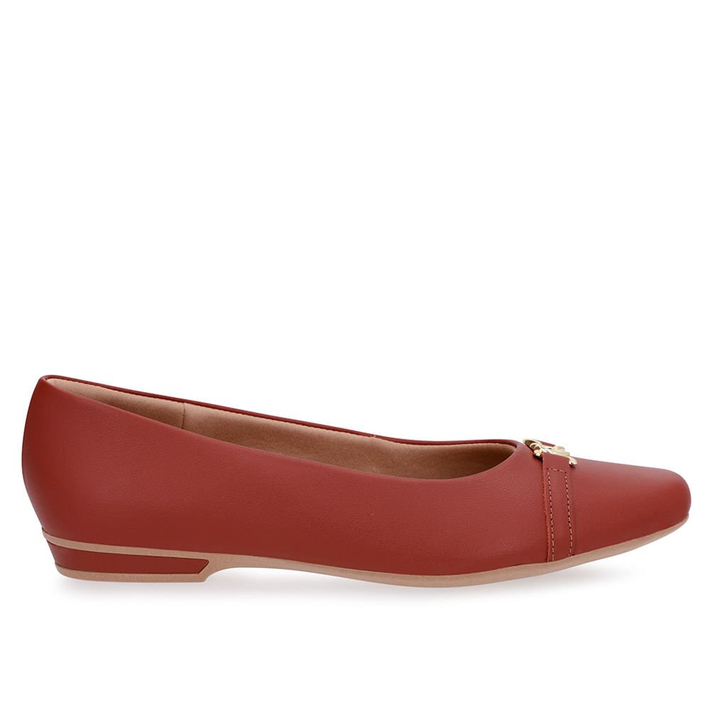 Sapatilha em couro mini escama e napa valise na cor terracota. O modelo possui tecnologia +Bem-Estar, com espumas posicionadas em pontos estratégicos na palmilha garantindo conforto e suavidade na pisada.