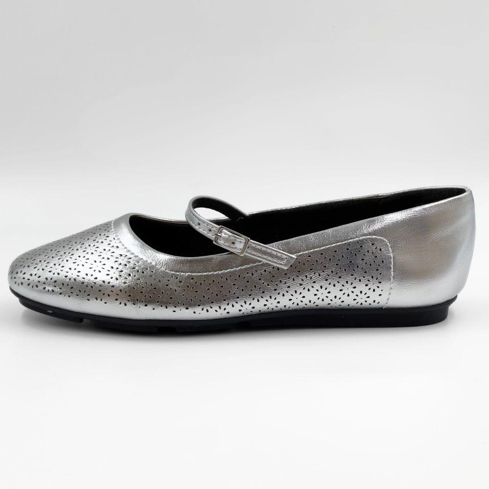 Sapatilha Piccadilly Metalizada Fechada Feminina Prata