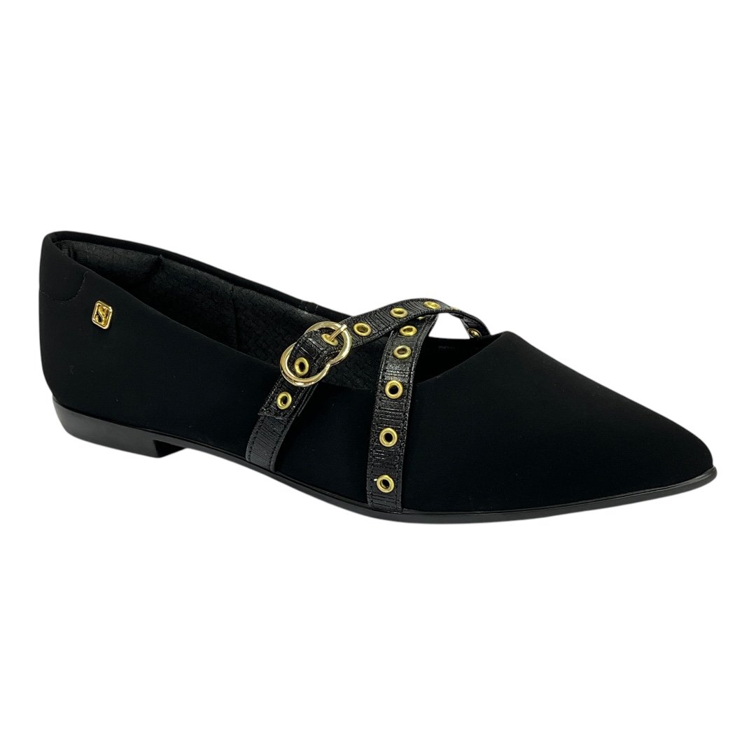 Sapatilha Santinelli Nobuck Bico Fino 1266-776 Preto Preto