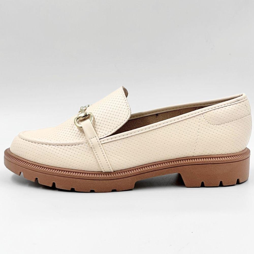 Sapato Beira Rio Loafer Tratorado Feminino Bege