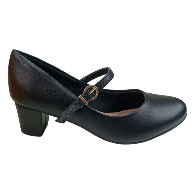 Salto: O salto grosso médio oferece equilíbrio e firmeza ao caminhar, sendo ideal para quem busca um calçado elegante sem abrir mão do conforto.